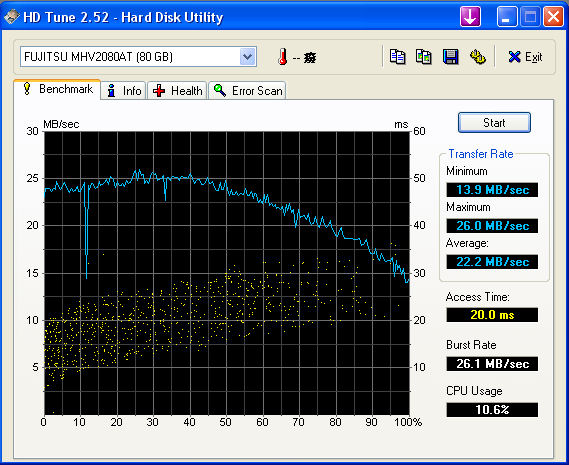 2.5" Fujitsu MHV2080AT 4200rpm 80GB Hard disk benchmark in a Hi-A8