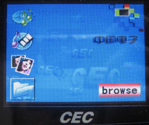 File menu system is cumbersome, with the rotating dial system displaying the icons very difficult to navigate as it is reversed of what is expected. File extraction system is highly difficult to control, with only file status on size visible. Browsing through the menu system is slow between different directories. This is typical of Telechips based mp4 players. Here and here is another mp4 player with an identical operating system as this X6.