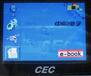 This model has a number of modes, including notepad text support and multiple language support. English, German, Spanish, Thai and Portuguese are pre-installed as default while Traditional, Simplified Chinese and Japanese are supported when its font library is installed. However, when reading anything other than English, the script is only readable when the player language is changed accordingly, and is unable to be read by default language such as English. The e-book function can only read unformatted plain *.txt format with no ability to read other documents. In addition, this player can play *.swf flash 5 or prior files. Again, support for Macromedia flash is poor, most flash files tried did not work or got terminated half-way due to "out of memory" error.