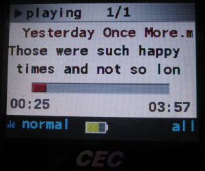 The player automatically builds a ID3 database which categorize the mp3s by Artists, Author, Album and genre. The ID3 database can be updated by pressing the menu button while selecting the MUSIC folder. Unlike other players, Hi-X8 also allows for lyrics *.lrc to be read, which is useful for karaoke. There is also an option to adjust the play speed of the music from 70%-130%. (Would anyone use it?)