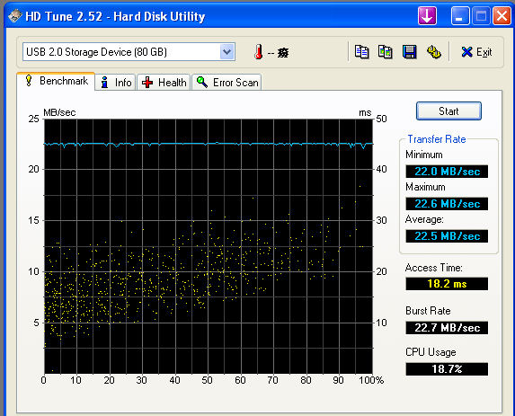2.5" Fujitsu MHV2080AH 5400rpm 80GB Hard disk benchmark in a USB 2.0 portable hard disk case (Soloman 632AW)