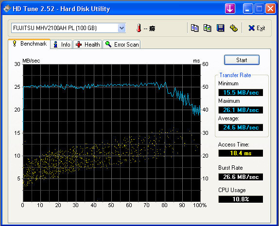 2.5" Fujitsu MHV2100AH 5400rpm 100GB Hard disk benchmark in a Laptop